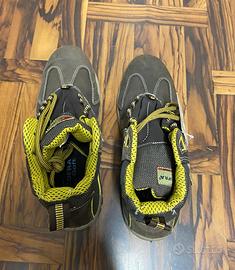 Cofra LIFT S3 SRC scarpe alte antinfortunistiche linea Tennis tg. 43 in vera pelle. Nuove mai usate senza scatola originale. Descrizione: Linea:TENNIS Tomaia:pelle scamosciata Fodera interna:SPHERA 100% poliammide, indemagliabile, traspirante, assorbente e deassorbente antiabrasione Fodera esterna:tessuto traspirante Soletta:FOOT-PAD, estremamente morbida e confortevole. Grazie al poliuretano a bassissima densità, si automodella, consentendo una corretta distribuzione del peso corporeo e conferendo un’immediata sensazione di comfort. L’elevato assorbimento dello shock d’impatto è ottenuto con un materiale altamente resiliente e una perfetta bombatura al centro del tacco Puntale:ALUMINIUM 200 J Lamina:non metallica APT PLUS - Zero Perforation Suola:poliuretano/TPU Calzata:11 Mondopoint