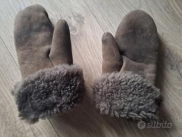 - moffole marroni in montone, rivestite internamente di pelliccia vera, adatte per mani medio-piccole; perfette e pulite. Euro 12,00.