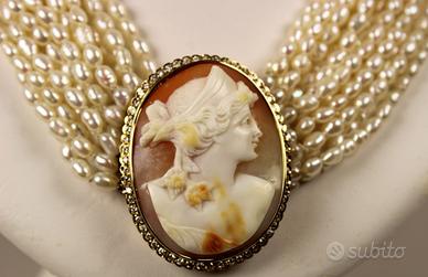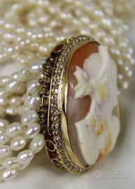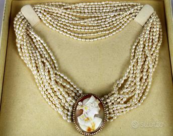 Originale e preziosa collana a 13 fili di perle fiume ovali, misura ca. 4 mm di diametro e con una lunghezza di ca. 5 mm. di un bellissimo colore bianco avorio lucido, in ottime condizioni.