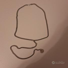 Collana a catena lunga con maglie grumetta e ciondolo rotondo con logo. Realizzatain acciaio , Chiusura a moschettone e anellino con logo per una vestibilità regolabile.