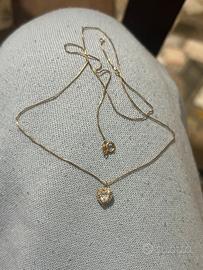 Collana in oro giallo 375, ciondolo a forma di cuire con zirconi tutto attorno