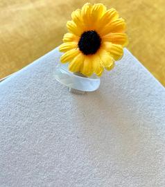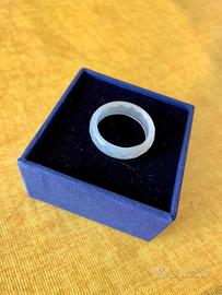 - Anello bianco lucido di pietra di fiume lavorato con particolari sfaccettature.
