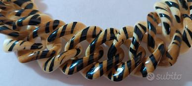 Collana in materiale plastico com maglie intrecciate stampa tigrata. Come da foto.