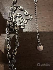 Collana a maglie ovali a forma di chicco di caffe in acciaio inossidabile nuova mai usata