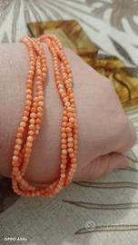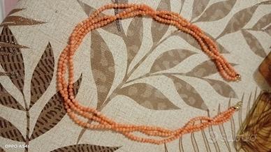 collana girocollo a tre fili di perle in corallo ,vintage anni 70