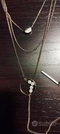 Come da foto, un filo avvolge il collo, il secondo più morbido e l'ultimo pendente con cerchio e perline.