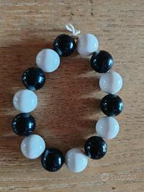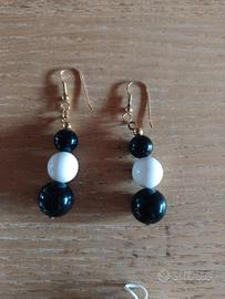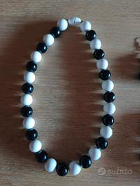 collana con bracciale e orecchini usati ma in buone condizioni con sfere di colore nero e bianco in acrilico misura come da foto
