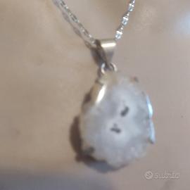 collana in acciaio e argento con naturale quarzo solare quarzo termico cambia colore da chiaro a scuro