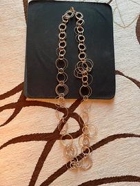 Collana in acciaio rose lunga 50cm formata da cerchi intrecciati tra di loro ( vedi foto ) di varie grandezze e di varie lavorazioni.