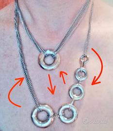Collana in acciaio inox e cristalli, del marchio swatch. Indistruttibile e indossabile in 3 differenti modi: lunga , con doppio giro e unico anello verso collo oppure multianello verso collo. Dotata di moschettone di chiusura. Introvabile. Ottima idea regalo.