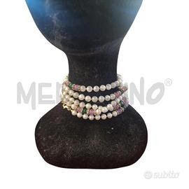 COLLANA AG PERLE E PIETRE VIOLA/VERDE STRASS