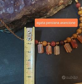 collana con centrale agata persiana arancione cilindrica mookaite tonda rondelle ematite creata e fatta a mano da me pezzi unico