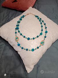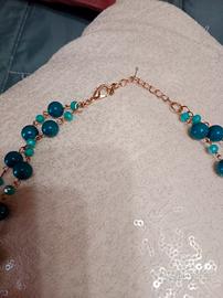 collana realizzata a mano. Ha due fili di pietre dure e particolari ai lati.