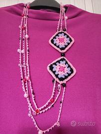 Collana realizzata all' uncinetto con quadrati della nonna.