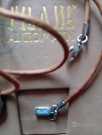 Collana Alviero Martini Prima Classe con cordino in cuoio e pendente tondo. In ottime condizioni.