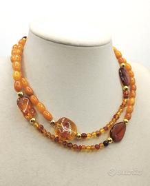 Accessorio intramontabile una bella collana di Ambra baltica, realizzata qui in uno stile semplice e molto duttile, anche doppiata. Elementi grandi e piccoli in Ambra chiara e scura, lucida e opaca. Cm. 80 + 7 catenella . Perfetta con gli outfit in ogni stagione Pezzo UNICO non replicabile !
