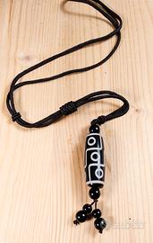 Collana amuleto Dzi agata nera nodo scorsoio