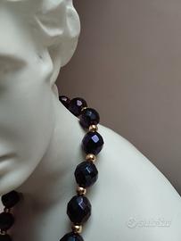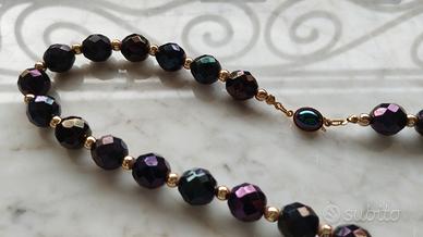 Collana vintage con perline sfaccettate dall'aspetto opalescente che creano un gioco di luci davvero affascinante. Lunga 29 cm (58 cm totali).