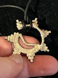 Collana con ciondolo decorato con strass. - Ciondolo a forma di animale stilizzato. - Dettagli in strass azzurri e bianchi. - Montatura color argento.