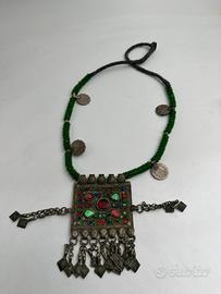 collana afghana antica con ciondoli e perline fatti a mano