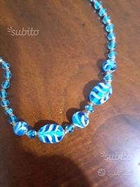 Collana corta antica murrina. Colore azzurro. Completa di confezione e certificato.