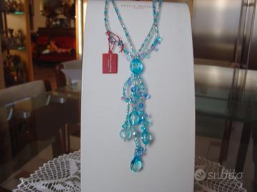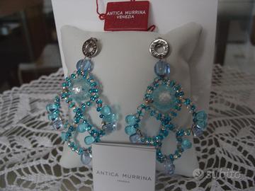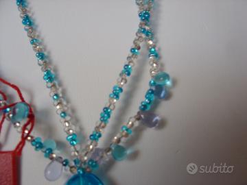 Collana Antica Murrina realizzata interamente a mano dai maestri vetrai.Perle vetro effetto goccia d'acqua con foglia argento puro lunga 46 52 cm colore azzurro con certificato garanzia e scatola vendo 95 euro. Orecchini abbinati alla collana sempre con scatola e garanzia vendo euro 50. Per info tel 324 6126425