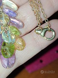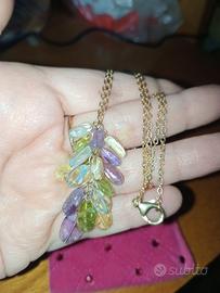 Collana in argento 925 placcato oro giallo con pendente in pietre miste naturali topazi/ametista/citrini/peridoti, astuccio in vellutino