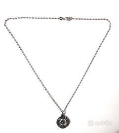 Collana, catena modello diamantato in argento 925 rodiato con ciondolo rosa dei venti in argento 925 rodiato.