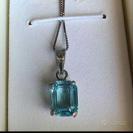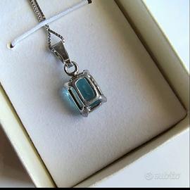 La pietra é di colore turchese (non so che pietra é), incastonata in una gabbia di argento 925.