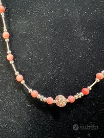 Splendida collana in argento 925 con preziose perle di corallo, un abbinamento raffinato che unisce l’eleganza del metallo prezioso al fascino senza tempo del corallo.