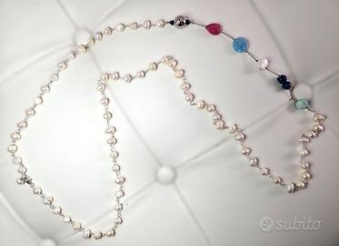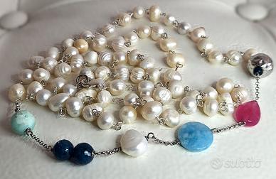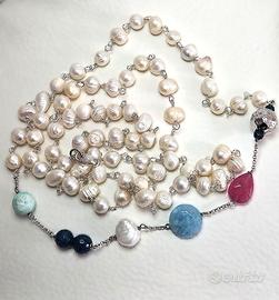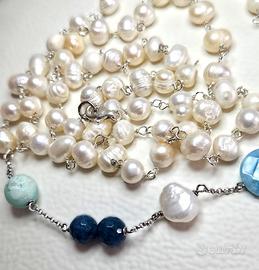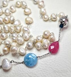 Elegante collana in argento 925 con perle e pietre naturali.