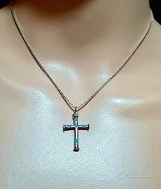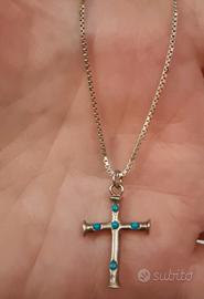 Collana argento con charm croce con pietre turchesi. Praticamente nuova ricevuta in regalo e mai indossata.