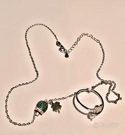 Charm con quadrifoglio e campanellino colore verde + anellino con cuore.