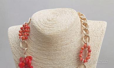 Splendida collana artigianale realizzata con corallo bambù naturale e catena in alluminio dorato, leggera, e inalterabile nel tempo. Un pezzo unico, perfetto per aggiungere un tocco di colore e personalità a ogni look!