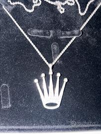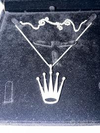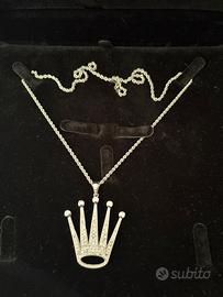 Splendida collana realizzata da maestri orafi, con ciondolo a corona interamente incastonato di diamanti.