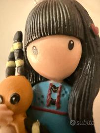 Handmade con amore: catena in acciaio con corallo naturale rosso-arancio irregolare e pendente bambolina Santoro che abbraccia il suo orsacchiotto arancione.