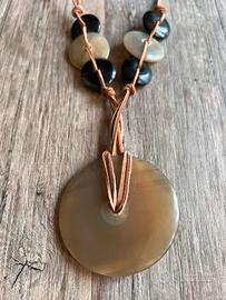 Collana artigianale originale dal Madagascar, realizzata in corno naturale e cordino in pelle, firmata Matahari.