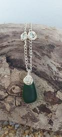 Vendo pezzo unico da collezione: un pendente realizzato con un autentico frammento di vetro marino verde scuro. La forma a goccia è stata modellata esclusivamente dalla forza del mare e dal tempo nel corso di decenni; non è vetro burattato artificialmente.