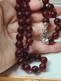 Bellissima collana anni 50 in corniola naturale con deliziosa susta in argento 925 a forma di elefantino portafortuna perché ha la proboscide all'insù