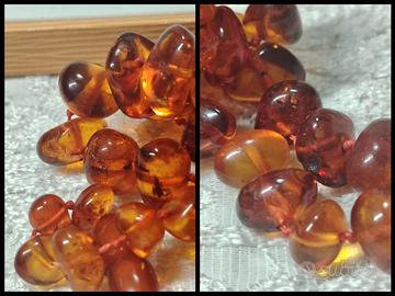 Bellissima e lunga collana di ambra baltica naturale con pepite grandi a scalare