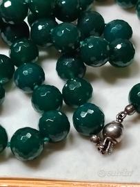 Bellissima anni 50, con agata verde e susta in argento 925, grani di 10mm