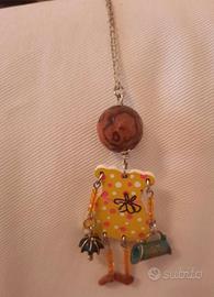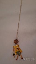 Deliziosa collanina con pendente in legno raffigurante una bambolina.
