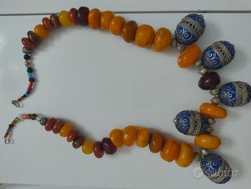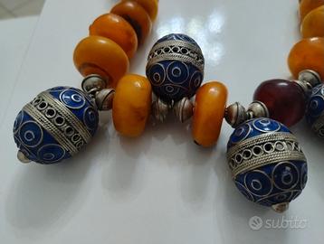 Immergiti nell'affascinante artigianato del Nord Africa con questa splendida collana berbera, un autentico pezzo di storia e cultura marocchina. Acquistata direttamente da un artigiano locale in Marocco, questa collana non è solo un gioiello, ma un vero e proprio talismano che racconta storie di terre lontane e tradizioni millenarie.