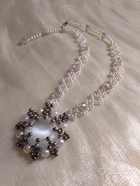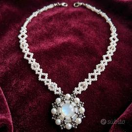 Collana bianca Vintage medaglione Pietre naturali