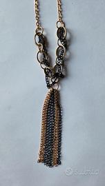 - Frangia di catenelle pendenti color oro e grigio scuro.
