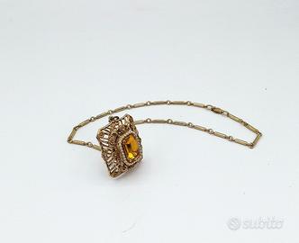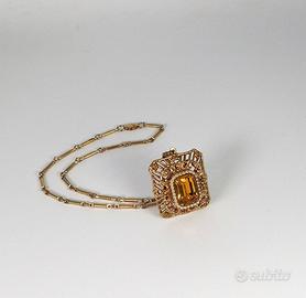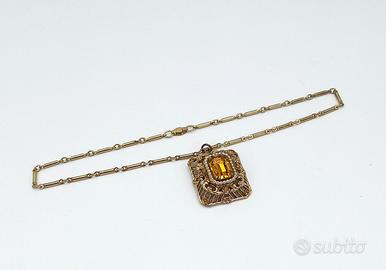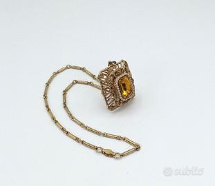 Collana Vintage anno 1975 firmata Coro, metallo dorato lavorazione a filigrana con cristallo topazio, tipico della collezione “Russian Antique”, articolo nuovo da collezione privata, lunghezza cm. 38.