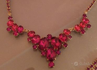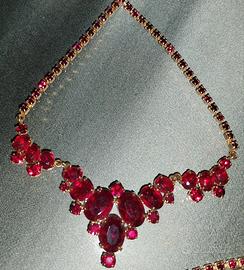 Collana di bigiotteria in metallo color oro e rubino. Lunghezza cm 43 Ottime notizie