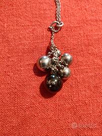 Collana della Bliss con ciondolo formato da sfere in acciaio, una nera con logo e piccolo strass, una piccola dorata. Usata ma in ottimo stato.