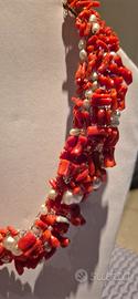 Collana a girocollo in pietre colore rosso corallo.