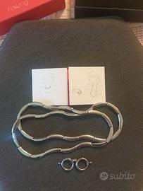 Collana/bracciale Breil Flowing donna in acciaio. Collana che può essere trasformata in collana doppia con l’apposito accessorio presente e anche in bracciale come si vede da foto. Completa di scatola originale e tagli andino illustrativo, praticamene nuova e perfetta. Per qualsiasi informazione e se interessati contattare. Il prezzo è trattabile.